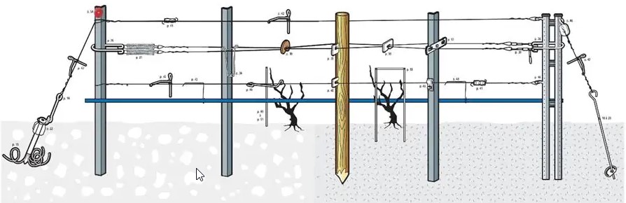I distanziatoriche permettono di mantenere i cavi di sollevamento e di agganciare i pali quando si desidera chiudere la vigna prima della vendemmia.